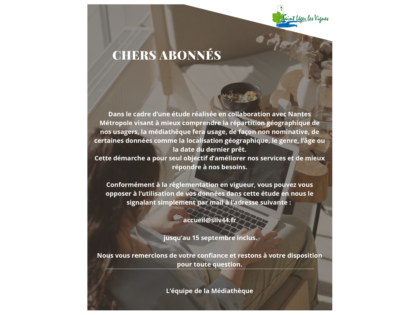 Message aux abonnés de la médiathèque.